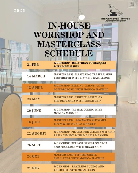 The Movement House is a Host Training Center for Merrithew where we conduct training for their programs. We also have a variety of other trainings and workshops from various internationally acclaimed Movement educators. Email to register for any of our courses or workshop here